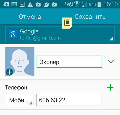 Вот, например, на скриншоте выше фамилия и номер телефона - нажимаем пикторамму "Контакты". Получаем: