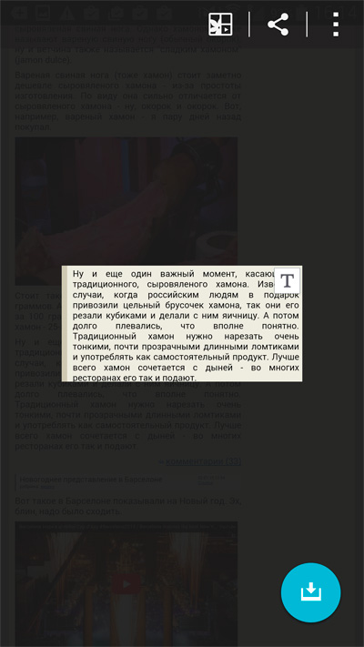 Второй пункт меню - смартвыбор, то есть выбор произвольной прямоугольной части экрана, причем скриншот можно просто сохранить как картинку в соответствующий альбом, а можно распознать в нем текст.