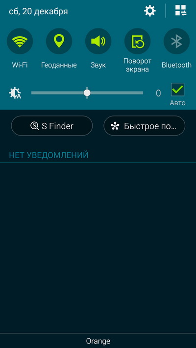 Область уведомлений с быстрыми переключателями, настройкой яркости, быстрым поиском по категориям S Finder и быстрым подключением к совместимым устройствам (телевизорам, аудиоустройствам и так далее).