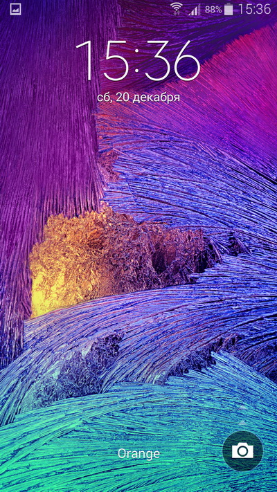 Экран блокировки, на который могут выводиться сообщения о пропущенных звонках и сообщениях. С помощью специальной пиктограммы можно сразу переходить в приложение "Камера".
