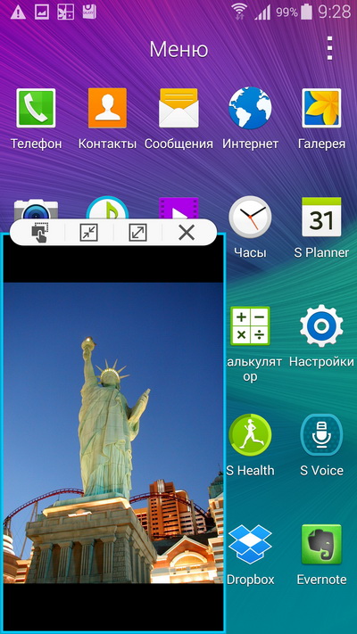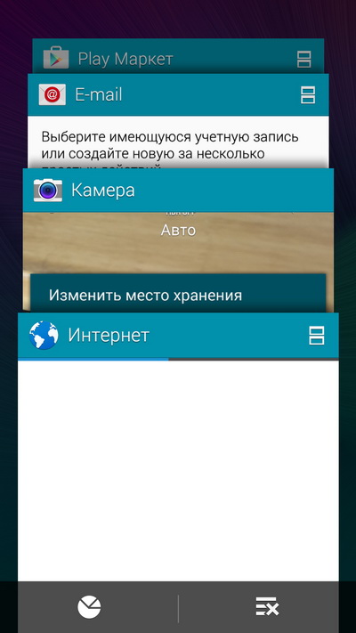 Левая экранная кнопка - список последних запущенных приложений. Если разрешен многооконный режим, то у тех приложений, которые могут превращаться в окна, справа сверху появляется специальный значок.
