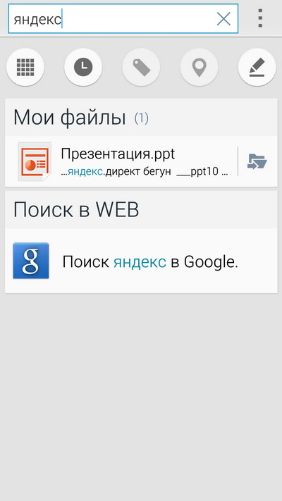 Активная заметка - штука очень интересная. При выборе активной заметки появляется оконное приложение, с помощью которого можно записывать какой-то текст, а потом навесить на него определенное действие (специальной пиктограммой слева сверху): позвонить нужному человеку, записать данные человека, отправить ему SMS/MMS, написать письмо, открыть ссылку в браузере, найти на карте, создать задачу.