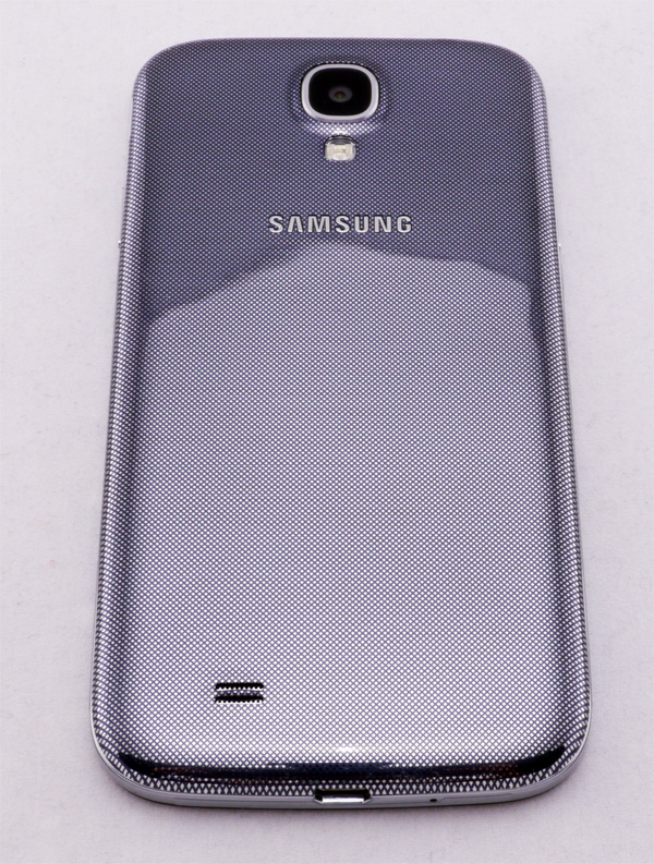 Задняя крышка у темного S 4 выполнена из гладкого пластика, но окраска пластика создает впечатление шероховатой поверхности. Пластик маркий и легко царапается.