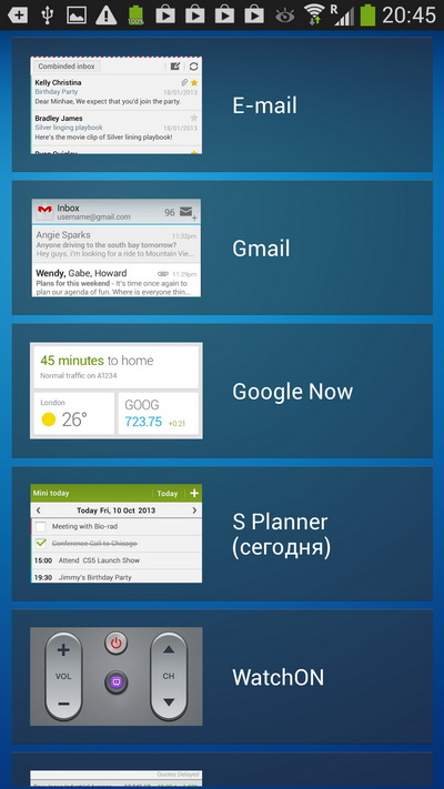 Далее мы не будем подробно разбирать каждое приложение, установленное в системе, потому что многие из них почти не отличаются от установленных в Galaxy S III. Так что пройдемся крупным помолом и отдельно остановимся на нововведениях, которые сделаны в этой модели.