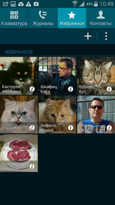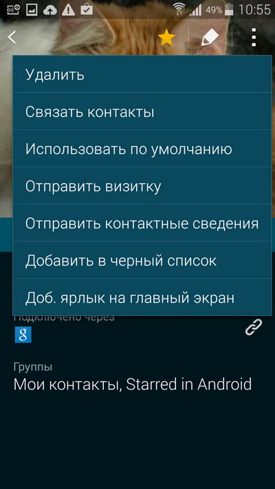 Работа с контактами. Обратите внимание на встроенный черный список. Также вы можете иконку контакта добавлять на десктоп для быстрого вызова.