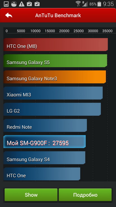 Ну что, здорово, он даже обогнал Galaxy Note 3. У того емкость аккумулятора 3200 мА·ч, но, конечно, дисплей больше.