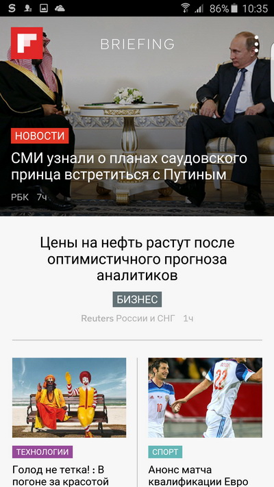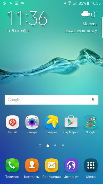 Традиционный для Samsung десктоп с программой Briefing - всякие мировые новости. Его можно отключить в настройках, что я всегда и делаю.