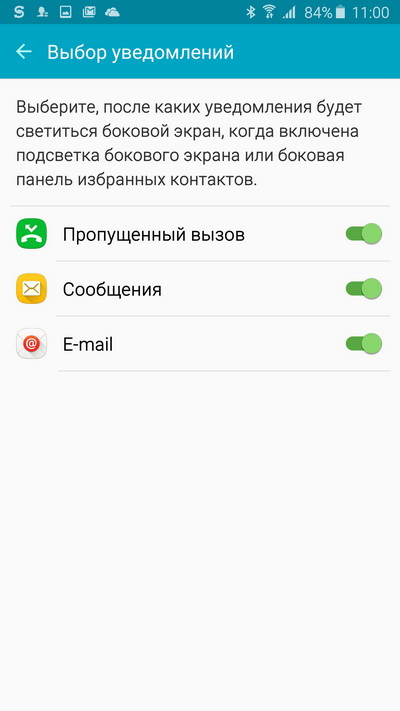 Настройка маркеров бокового экрана - световые уведомления о пропущенных звонках, сообщениях, письмах.
