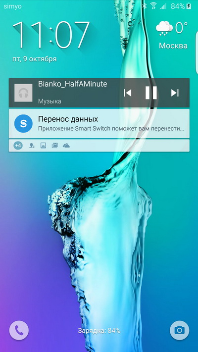 Экран блокировки: на него выводятся виджет плеера и уведомления. Из этого экрана можно сразу попасть в телефонное приложение или в приложение "Камера".