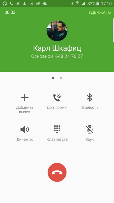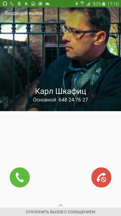 Входящий звонок.  (При работе в других приложениях входящий звонок идет в виде небольшого всплывающего окна.)