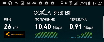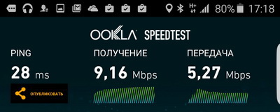 Скорости мобильного подключения к Интернету и доступ через Wi-Fi - практически максимальные (для данных условий тестирования).