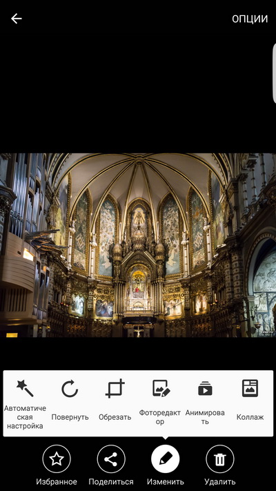 Есть различные средства редактирования. Приложение умеет делать анимированные ролики из фотографий и коллажи.