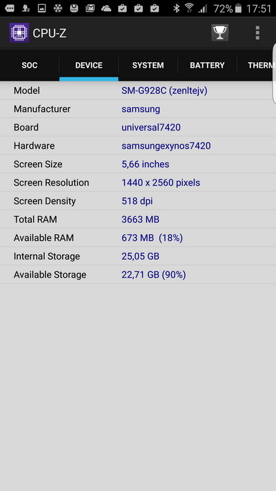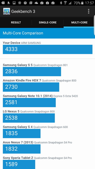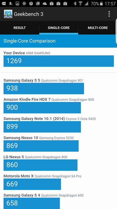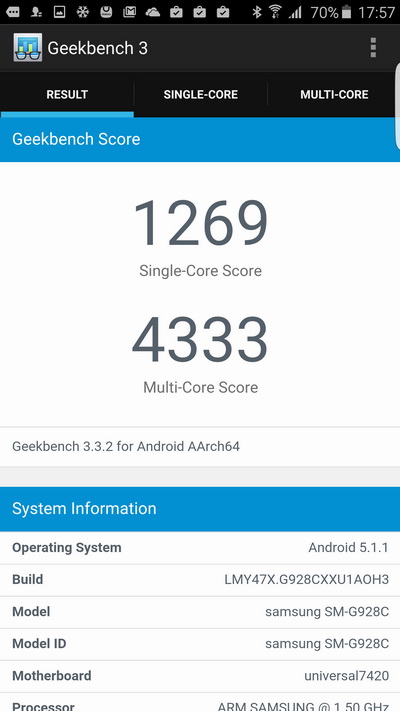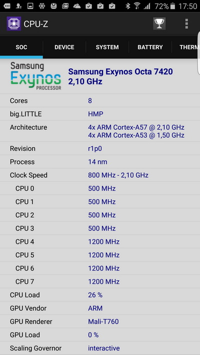 Процессор: Samsung Exynos 7420, 1,5-2,1 ГГц (восьмиядерный, 4 Cortex-A53 и 4 Cortex-A57)