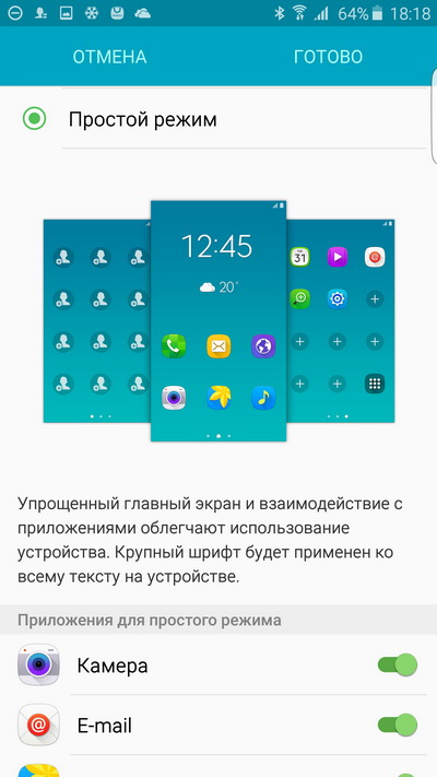 Здесь установлен Android 5.1.1, однако компания Samsung традиционно использует собственную оболочку TouchWiz и собственные системные приложения.