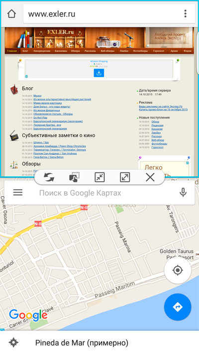 Кстати, при длинном нажатии кнопки "Возврат" вызывается меню открытого приложения (или оболочки). Длинное нажатие по кнопке списка запущенных приложений вызывает оконный режим, где вы можете в одном окне загрузить два разных приложения и обмениваться данными между ними.