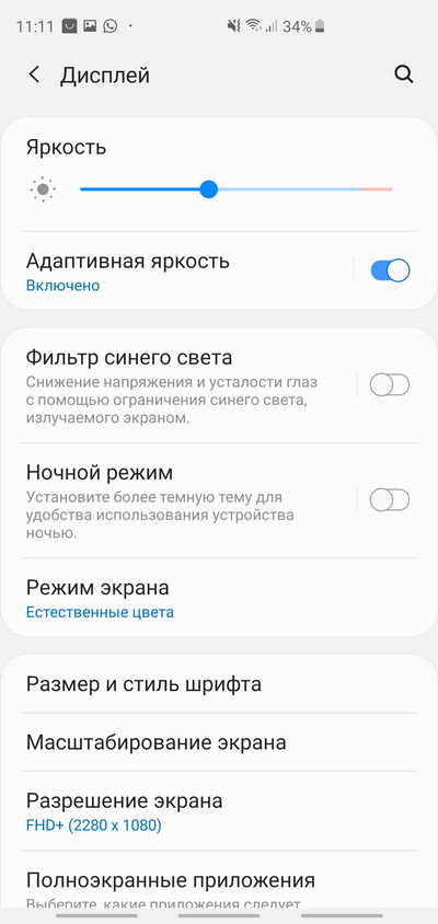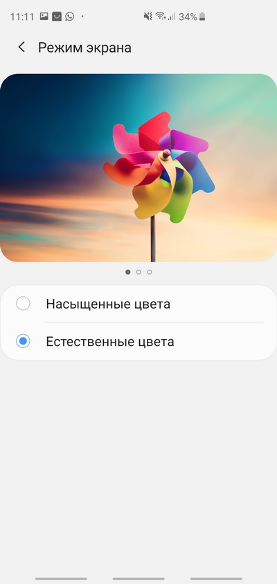 Режим экрана. Мне вариант "Естественные цвета" нравится больше.
