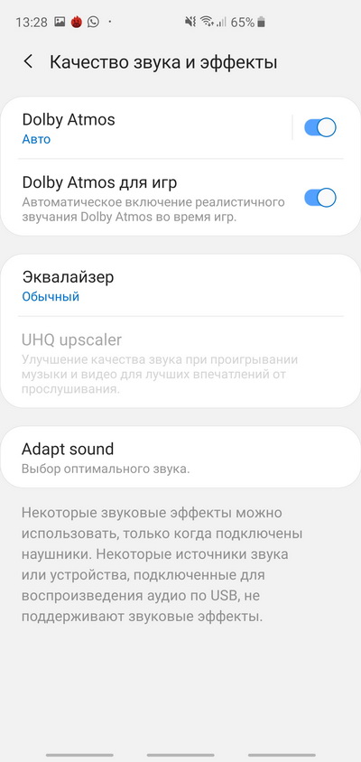 В настройках можно включить систему улучшения звука Dolby Atmos. С ней действительно можно добиться интересных результатов.