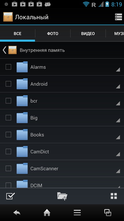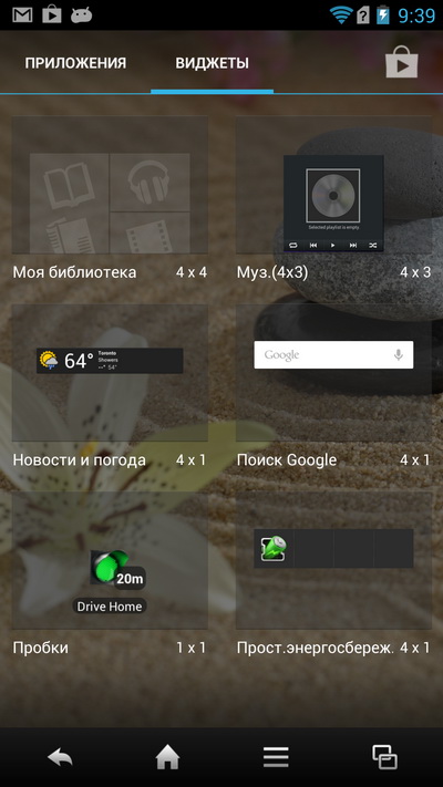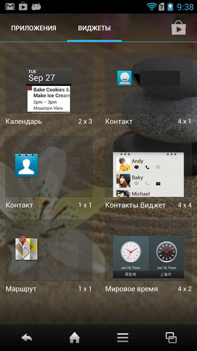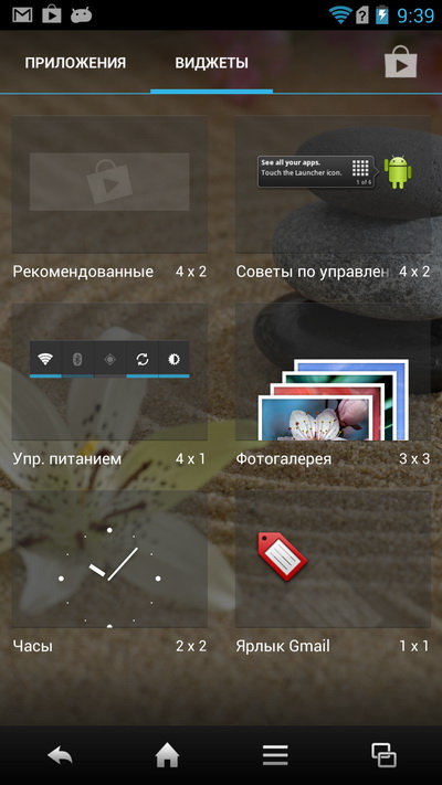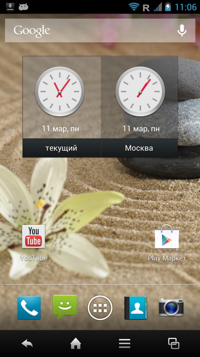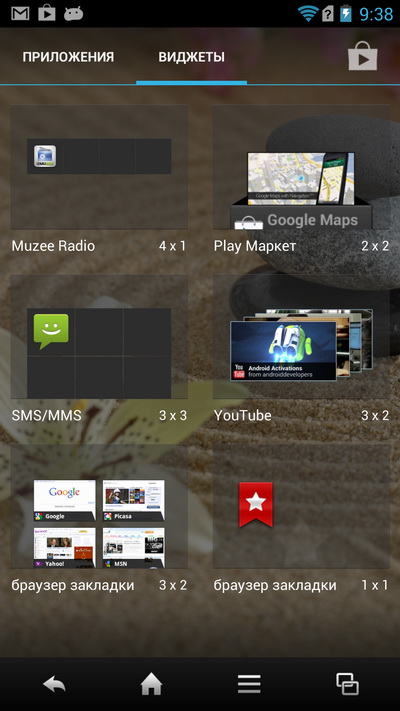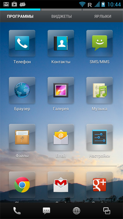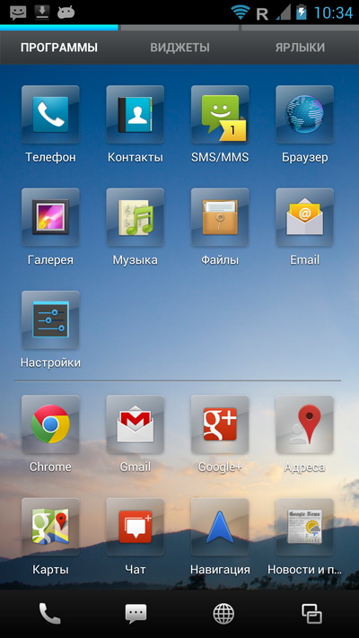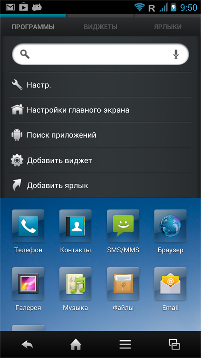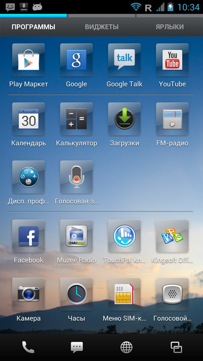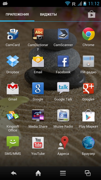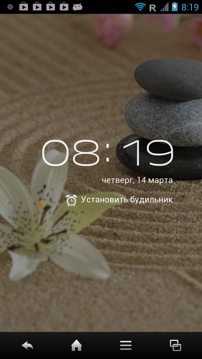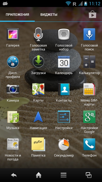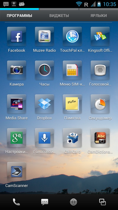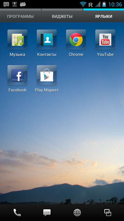 Нижняя панель тут не редактируется, там всегда четыре пиктограммы: телефон, SMS, браузер и список последних запущенных приложений, причем в момент запуска приложения нижняя панель меняется на панель с управляющими пиктограммами.