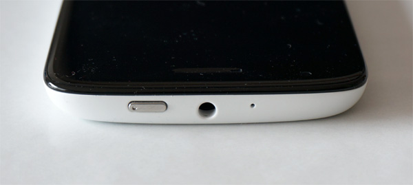 Верхний торец - кнопка питания, выход для наушников (гарнитуры), второй микрофон. Кнопка питания сделана хорошо: нажимается вполне внятно, проблем не вызывает (а это бывает далеко не у всех телефонов - не будем показывать пальцем на HTC X8).