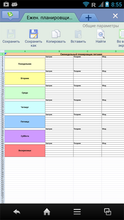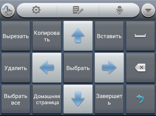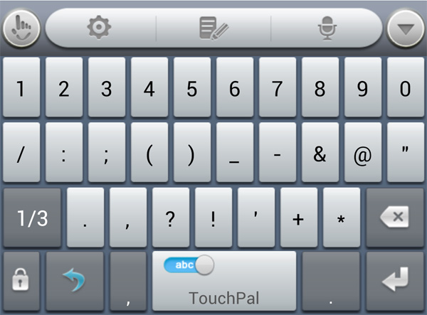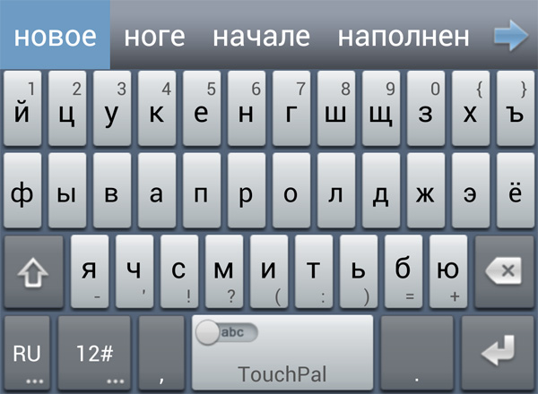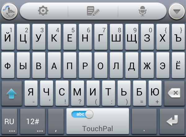 До обновления здесь была самая обычная андроидная клавиатура, после обновления появилась продвинутая клавиатура под названием Touch Pal (ее можно бесплатно скачать из Google Play). Она гибко настраивается и обладает многими возможностями: автоматическая проверка орфографии, ввод слов скольжением по буквам (режим Curve) и так далее. Особенно тут радуют наличие кнопок с точкой и запятой на русской раскладке, специальный раздел курсоров и работы с буфером текста, очень приличный голосовой ввод (включая русский). В общем, клавиатура так понравилась, что я ее даже поставил на свой телефон, тем более что она, как я уже написал, совершенно бесплатная.
