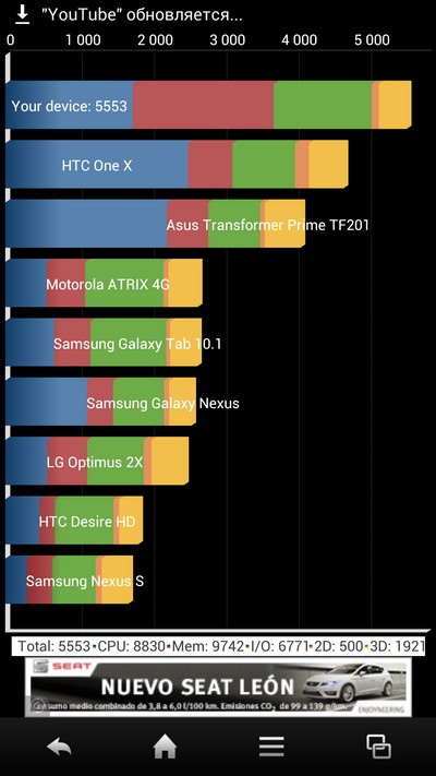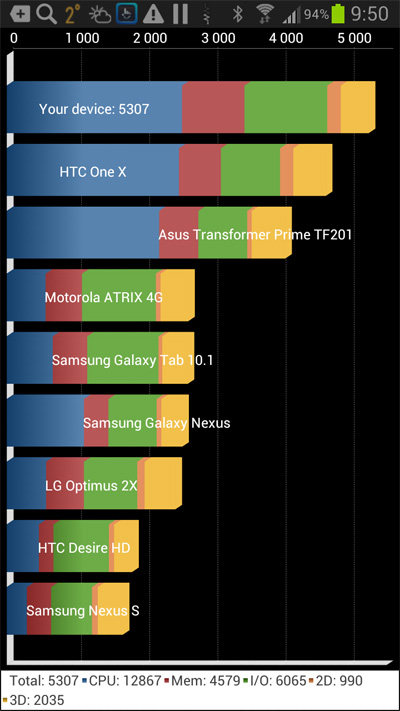 Об особенностях Full HD применительно к работе приложений мы поговорим чуть позже, а если говорить об общем впечатлении при сравнении дисплеев этого смартфона и, например, Galaxy S III, то должен сказать, что обычный пользователь разницу увидит только в том случае, если будет сильно приглядываться. Эта разница, конечно, есть: дисплей тут заметно более качественный, те же пиктограммы и любые другие изображения, если заметно приблизить и вглядеться - выглядят лучше. Но скажу честно: принципиальной разницы, в общем и целом, я тут не увидел. Да, по ощущениям - получше, глаза меньше устают (но тут и матрица совершенно другая), пиктограммы вроде чуть более сглаженные, но в глаза это не бросается. Если дать два обсуждаемых смартфона в руки обычному пользователю и попросить его сказать, где больше разрешение и где лучше качество, - ответы можно получить совершенно различные, потому что многие пользователи за качество принимают излишнюю контрастность и яркость цветов.