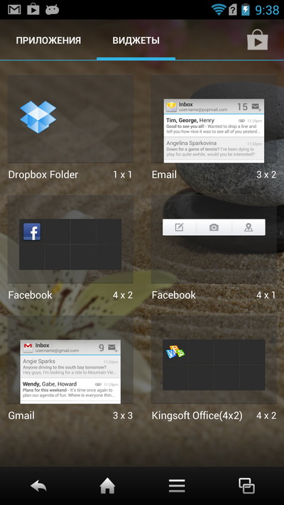 Так как кнопка "Домой" отсутствует, на нижней панели кнопок здесь помещается полный комплект: назад, домой, меню и список последних запущенных программ. (С кнопкой "Домой" обычно на панели помещаются не больше двух кнопок, которые уже давно делаются сенсорными.)