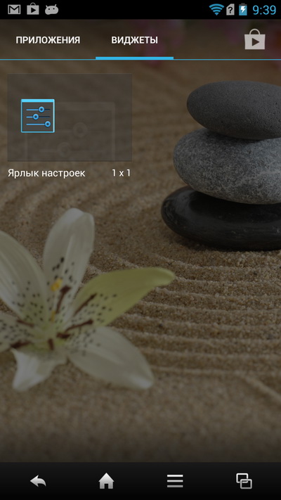 Каждую отдельную пиктограмму можно перемещать по десктопу при длинном нажатии (также удалять - для виджетов и ярлыков), а добавление виджетов и ярлыков делается в специальном меню, которое вызывается при смахивающем жесте по экрану в любой закладке, - вот это меню. Настройки и поиск приложений - это обычное приложение настроек системы и вызов магазина Google Play.