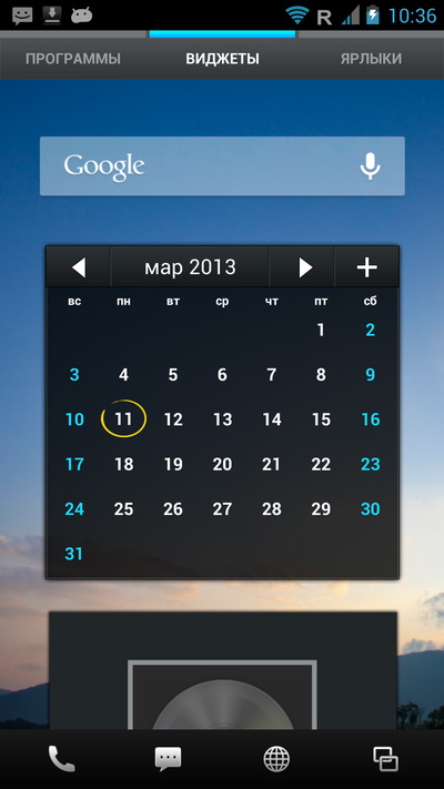 Вот десктоп слева - с виджетом календаря.