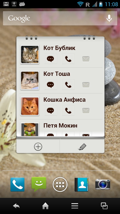 На десктопе справа - виджет с контактами, который я настроил под себя.