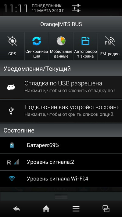 Обратите внимание на предыдущий скриншот: смартфон также показывает в виде отдельных уведомлений уровень заряда батареи, уровень сигнала мобильной связи и уровень сигнала Wi-Fi. Это очень полезно.