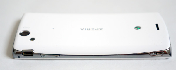 Внешне телефончик смотрится очень пристойно - дизайнеры в Sony работают хорошие. С лицевой стороны смартфон выглядит изящно и стильно - экран занимает почти всю поверхность, окантовка из белого пластика скошенными углами уходит к торцам из серебристого пластика, которые сверху не видны.