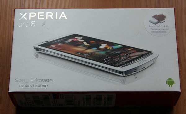 Поставляется вот в такой коробке с двумя психоделическими надписями. Первая надпись - "Sony Ericsson. Притворяться". Это, видимо, они намекают, что притворяются нормальным телефоном. Вторая надпись большими буквами - "Android 4". И уже совсем мелкими, как в кабальных договорах, "Возможность обновления". То есть продаем-то мы вам, товарищи дорогие, телефон с Android 2.3. А уж сможете вы потанцевать с бубном, чтобы поставить четверку, или нет - это уж маркетологам неведомо. Главное - крупно написать Android 4.0.