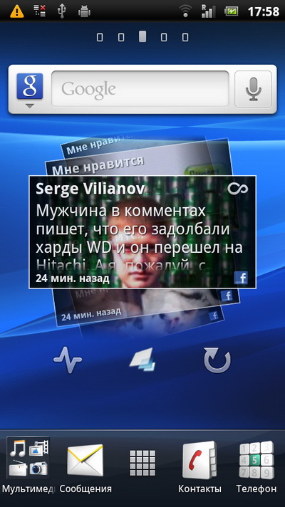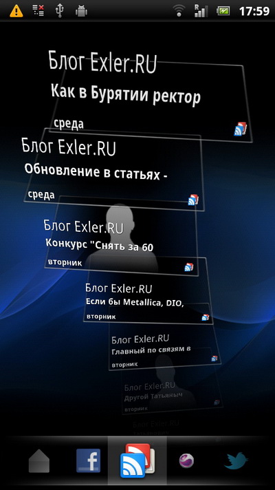 Специальное приложение с виджетом, который по умолчанию размещается на основном рабочем столе: в нем интегрируются различные социальные сети и новостные каналы.