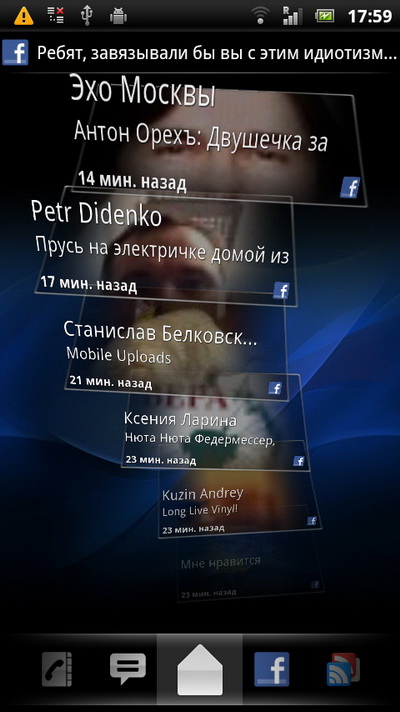 Вот так выглядят в виджете обновления из Facebook и Twitter.