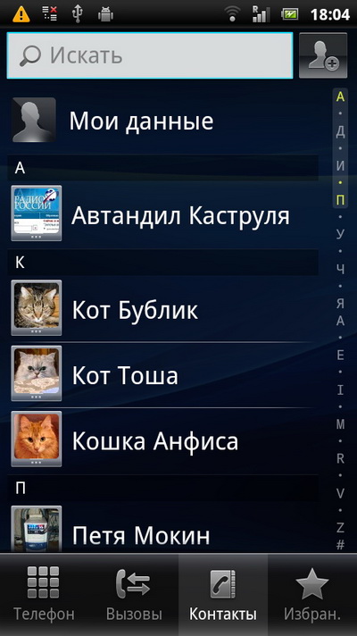 Телефонное приложение довольно удобное. При переходе в контакты сразу появляется строка поиска. (Это есть не во всех телефонах, как я замечал.)