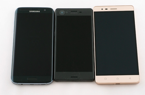 Ну и вот Xperia X рядом с Samsung Galaxy S7 edge и Lenovo Note 5.