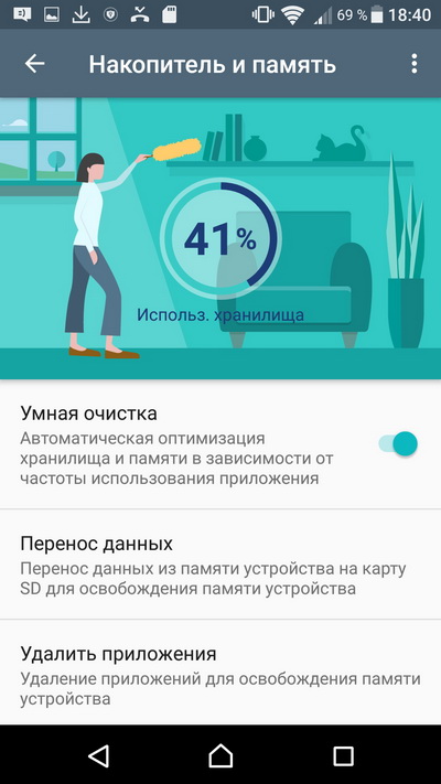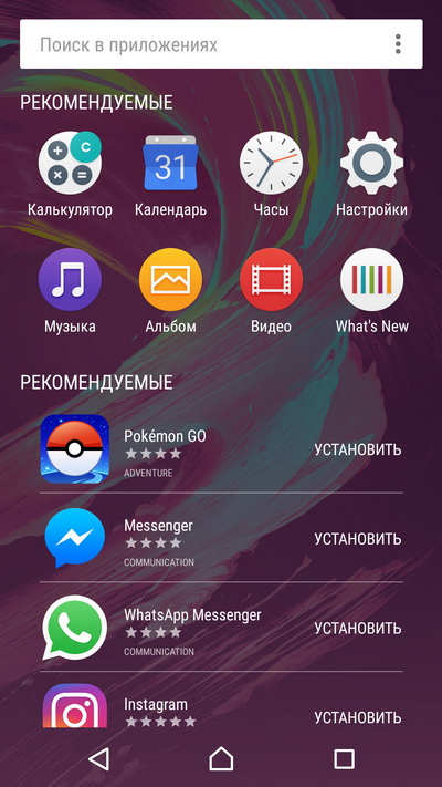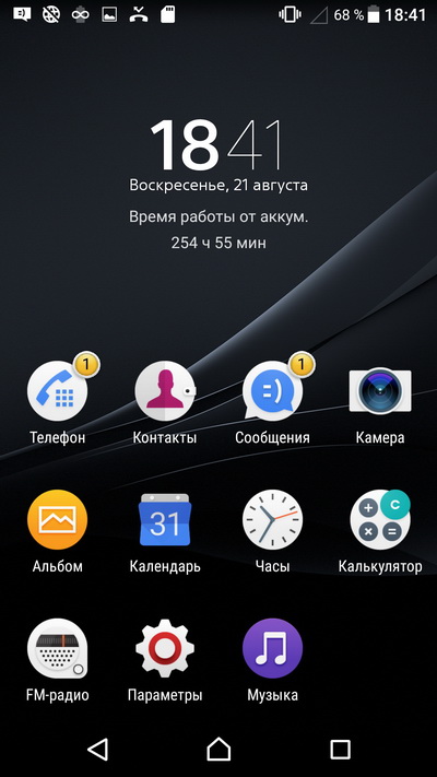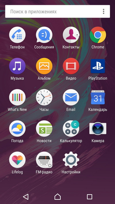 Здесь установлен Android 6.0.1, но, как обычно у Sony, используются собственная оболочка и собственные системные приложения.