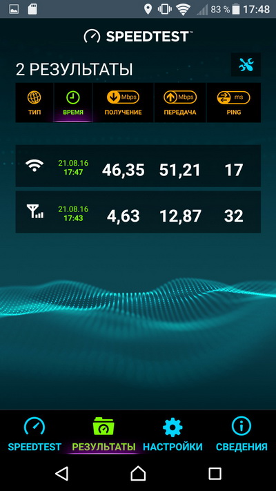 Тесты скоростей Wi-Fi и мобильного Интернета показали вполне нормальную скорость (в сравнении с тем же Samsung Galaxy S7 edge).