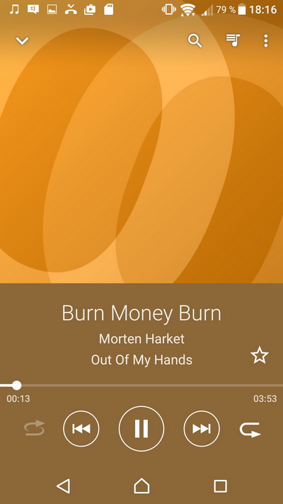 Этот смартфон поддерживает аудиотреки высокого качества: если загрузить lossless-треки, то их можно проигрывать системным приложением, при этом рядом с такими треками появляется значок HR (HiRes).