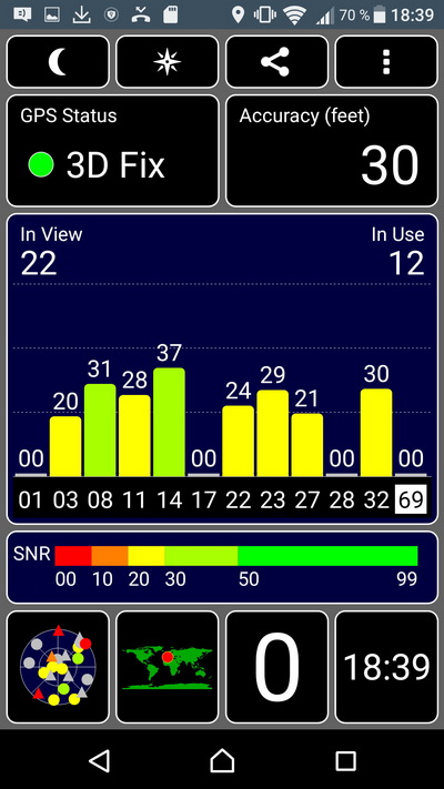 Даже при холодном старте связь со спутниками установилась почти мгновенно. Координаты определяет очень устойчиво, программы навигации работают без каких-либо проблем.