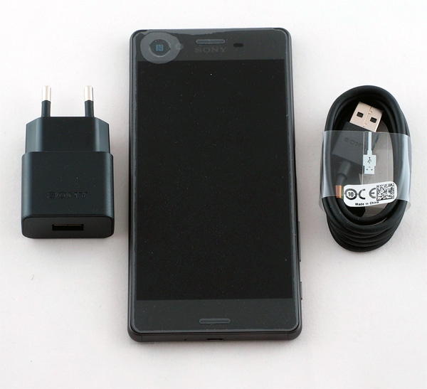 Комплектация предельно аскетичная: смартфон, адаптер питания, кабель USB-microUSB.