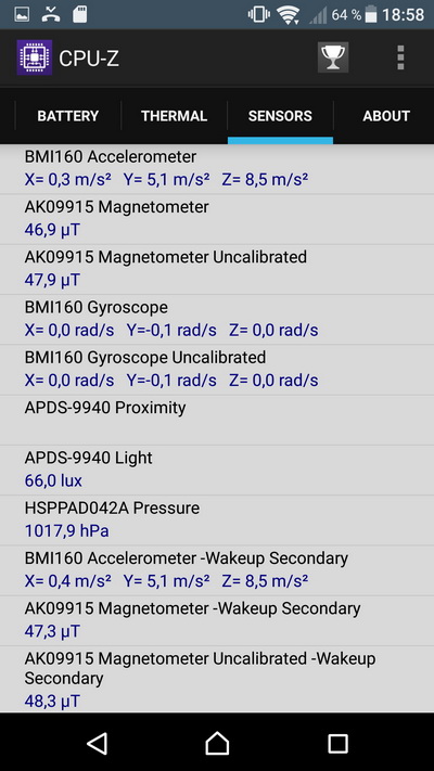 Дополнительно: датчики приближения, освещенности, давления, гироскоп, акселерометр, компас