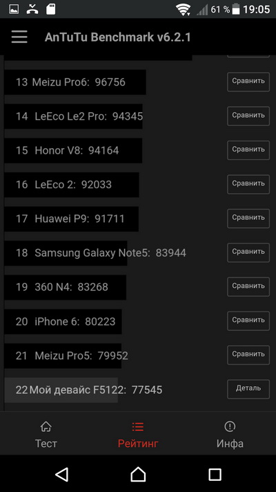 В сравнительной таблице смартфон на 22-м месте, рядом с iPhone 6.