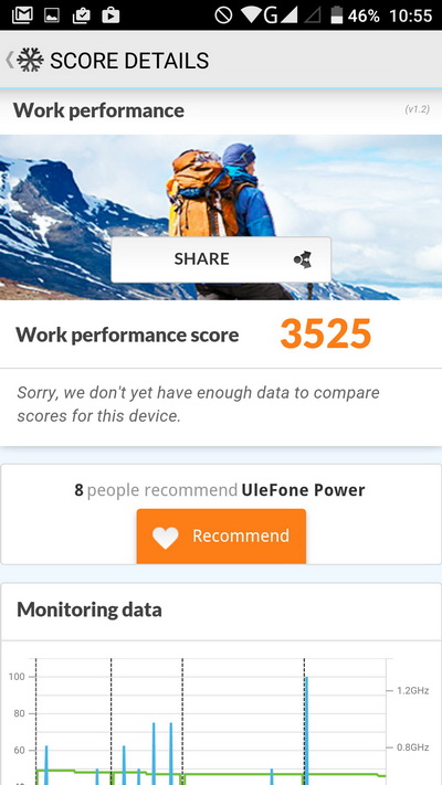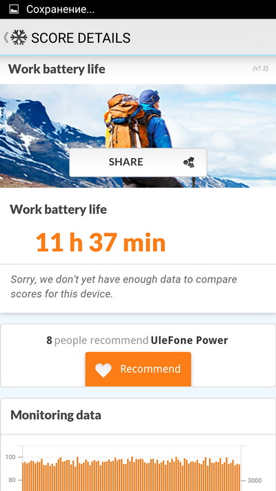 Тут, конечно, очень интересно было посмотреть на время автономной работы. Потому что емкость емкостью, а сбалансированность энергопотребления - штука важная. Вон Elephone P8000 имеет батарею емкостью 4165 мА·ч, а время автономной работы демонстрирует достаточно средненькое.