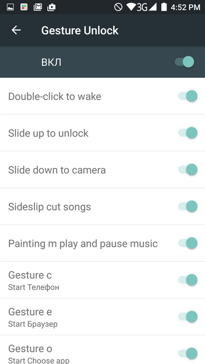 Настройки жестов. Удобная штука. Можно "пробуждать" аппарат двойным постукиванием, запускать определенные приложения, нарисовав на экране определенный символ.