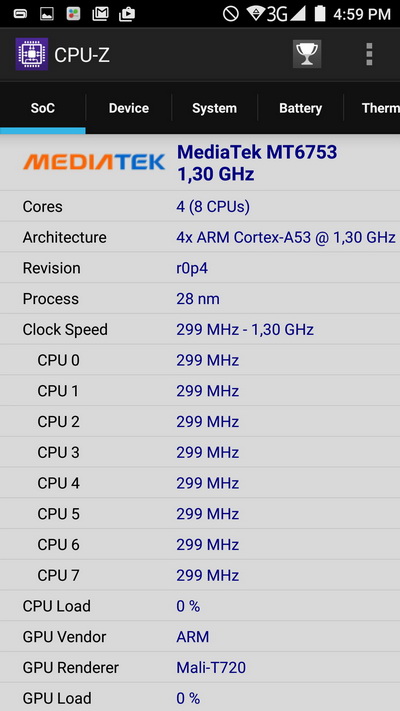 Процессор: MTK6753 64bit Octa Core 1.3GHz