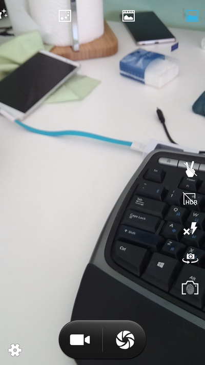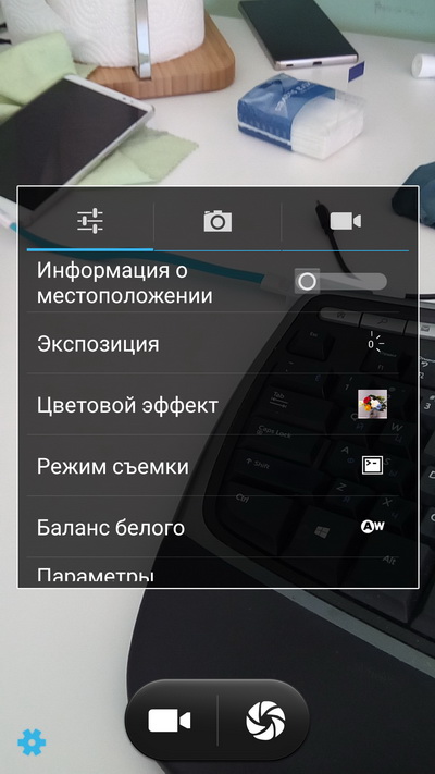 Простенький интерфейс: режимы съемки, пиктограммы настроек и действий.