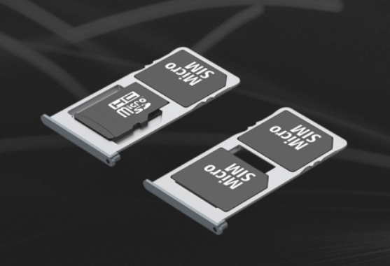 На левом торце сверху - слот под две сим-карты формата microSIM или одну сим-карту и карту памяти microSD.