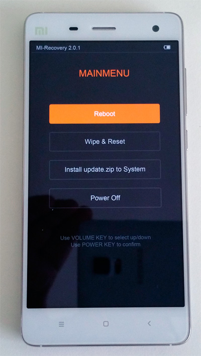 В появившемся меню есть пункт "Install update.zip to System". То есть вам остается добыть желаемую прошивку, кинуть ее в корневую папку телефона, после чего выключить его, включить в Mi-Recovery и перепрошить.