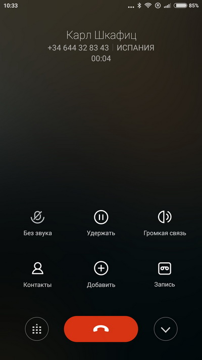 Режим разговора - изображение почему-то пропадает. Есть возможность записи разговора.